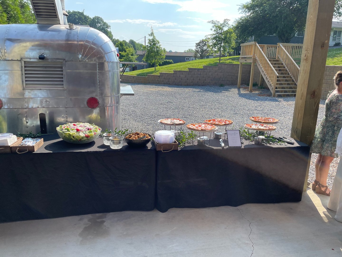 Haven't sent your invitations yet? Take advantage of our pre-selected menu option by allowing guests to choose their preferred pizzas when they RSVP. This thoughtful touch enables us to tailor the preparation of pizzas during the ceremony, ensuring a seamless dining experience. This package includes a variety of drinks to complement your meal, with the option to add side salads for an additional fee.