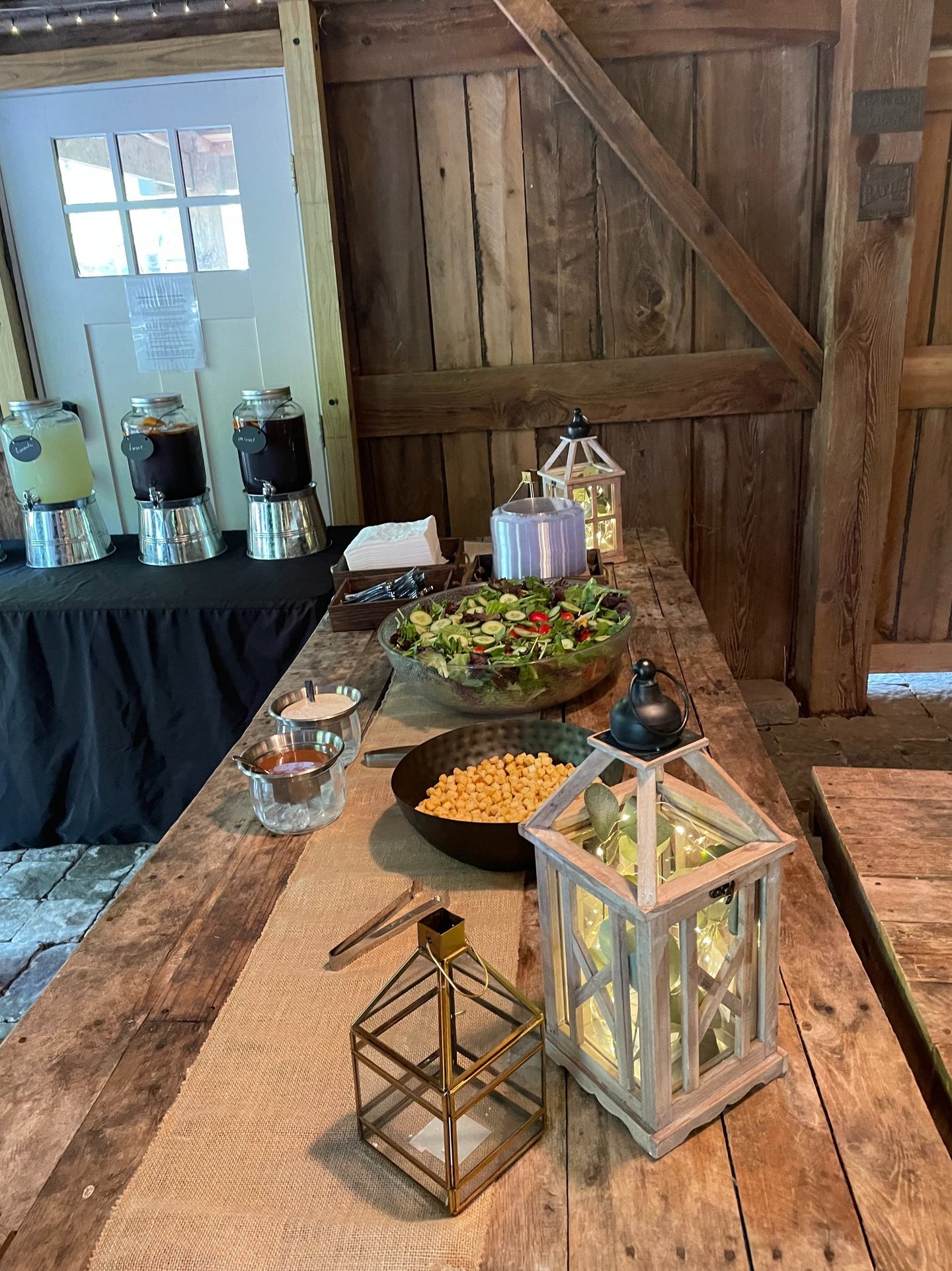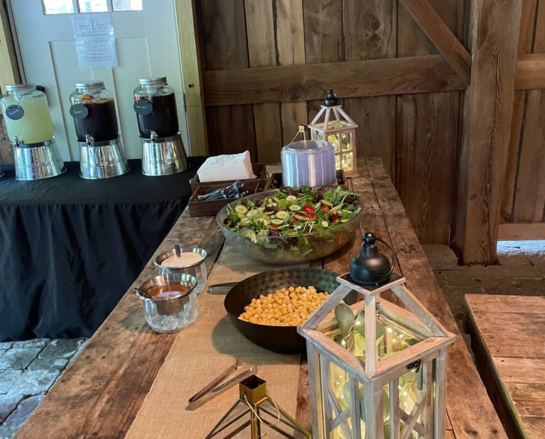 This package is complemented by a selection of self-serve beverages, including lemonade, water, sweet tea, and unsweet tea, with the option for canned drinks. Additionally, it features a classic hand-tossed Caesar salad, with the possibility to upgrade to our exclusive house or spring salad for a nominal extra charge.