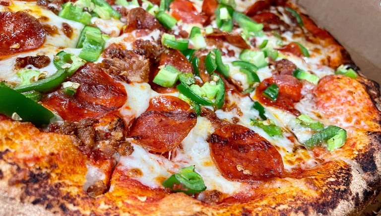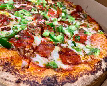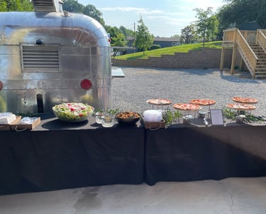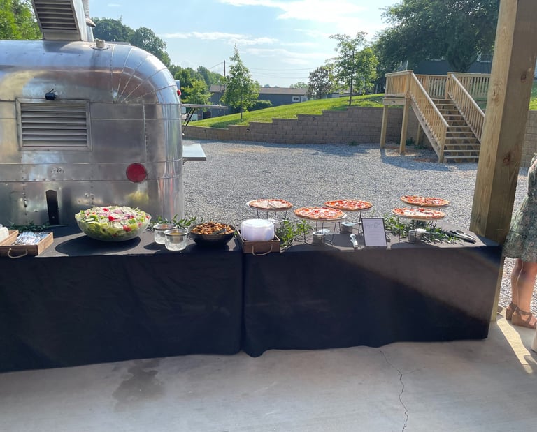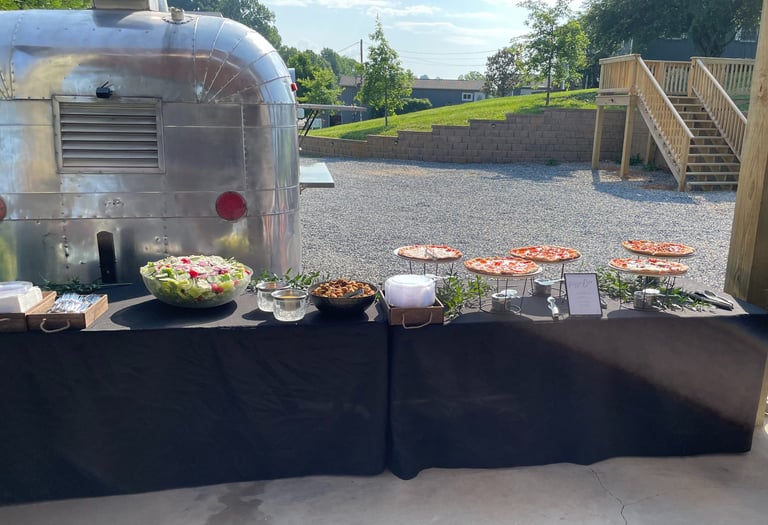Select any 5 of our delicious 14” pizzas from the menu or unleash your creativity by designing your own. We include all essential serving gear for a seamless experience. Your chosen pizzas will be artfully presented on trays, accompanied by tongs, plates, napkins, and forks, ensuring a full-service dining experience right at your event. Our team will cook all pizzas on-site and keep the pizza station fully stocked, catering to your guests' tastes while minimizing waste
