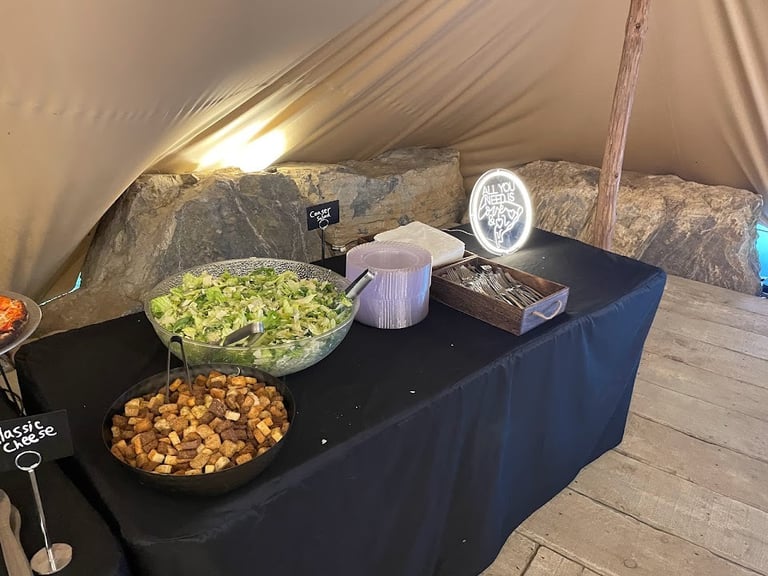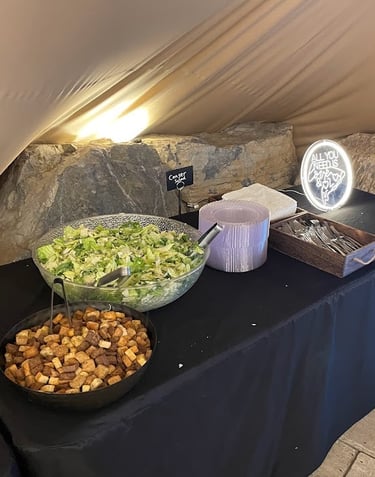 Our hand-tossed Caesar salad is a delightful addition to our catering packages. It is prepared with fresh, crisp romaine lettuce, tossed in a creamy Caesar dressing, and topped with shaved Parmesan cheese and crunchy croutons.