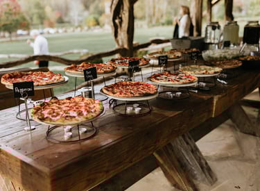 An expertly curated tasting of our Full Pizza Bar, designed to give you a true preview of the full catering experience. This includes pizza, salad, beverages, and dessert, presented in a simple mock setup so you can see how everything looks and flows during an event
